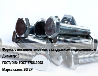 Болт с потайной головкой, с квадратным подголовником 6 ГОСТ 7786-2008 Сталь: 20Г2Р, кг цена от 141.54 ₽ / кг, где купить, условия доставки в Иркутске и Иркутской области