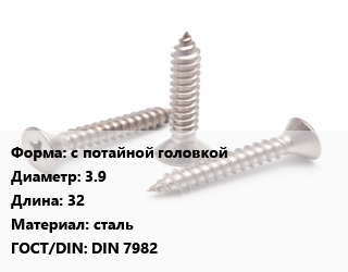 Саморез с потайной головкой D=3.9 L=32 сталь ГОСТ: DIN 7982, упаковка 1000 шт цена от 603.01 ₽ / кг, где купить, условия доставки в Иркутске и Иркутской области