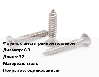 Саморез с шестигранной головкой D=6.3 L=32 сталь оцинкованный