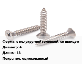 Саморез с полукруглой головкой, со шлицем D=4 L=18 оцинкованный, упаковка 1500 шт цена от 321.75 ₽ / кг, где купить, условия доставки в Иркутске и Иркутской области