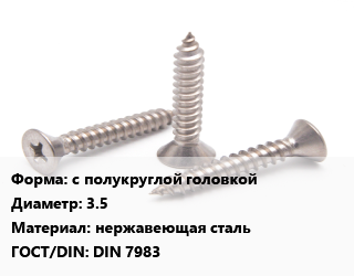 Саморез с полукруглой головкой D=3.5 нержавеющая сталь ГОСТ: DIN 7983