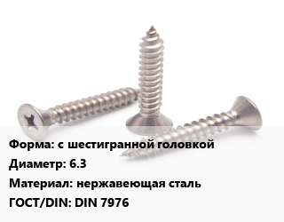 Саморез с шестигранной головкой D=6.3 нержавеющая сталь ГОСТ: DIN 7976