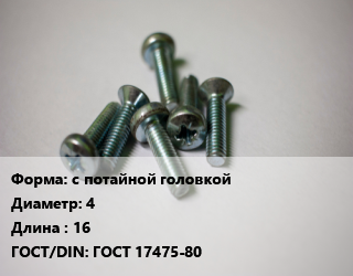 Винт с потайной головкой 4х16 ГОСТ 17475-80