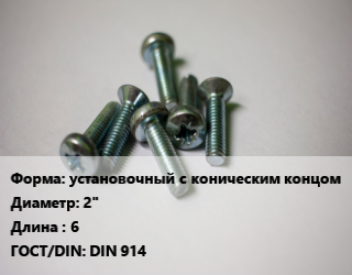 Винт установочный с коническим концом 2"х6 DIN 914, 12.9, цена за шт, кг цена от 5.18 ₽ / кг, где купить, условия доставки в Иркутске и Иркутской области