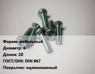 Винт мебельный 6х20 DIN 967 оцинкованный