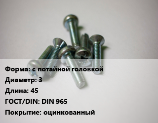 Винт с потайной головкой 3х45 DIN 965 оцинкованный, цена за 1000 шт, кг цена от 674.01 ₽ / кг, где купить, условия доставки в Иркутске и Иркутской области