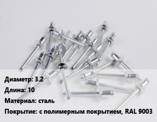 Заклепка 3.2х10 сталь с полимерным покрытием, RAL 9003