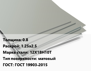 Лист нержавеющий 0.8 1.25х2.5 Сталь: 12Х18Н10Т Тип:матовый ГОСТ 19903-2015