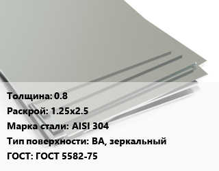 Лист нержавеющий 0.8 1.25х2.5 Сталь: AISI 304 Тип:BA, зеркальный ГОСТ 5582-75, шт цена от 7 625 ₽ / т, где купить, условия доставки в Иркутске и Иркутской области