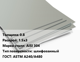 Лист нержавеющий 0.8 1.5х3 Сталь: AISI 304 Тип:шлифованный ASTM A240/A480