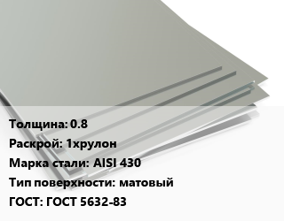 Лист нержавеющий 0.8 1хрулон Сталь: AISI 430 Тип:матовый ГОСТ 5632-83 цена от 195 861 ₽ / т, где купить, условия доставки в Иркутске и Иркутской области