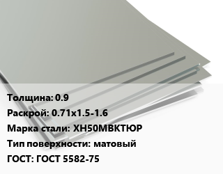 Лист нержавеющий 0.9 0.71х1.5-1.6 Сталь: ХН50МВКТЮР Тип:матовый ГОСТ 5582-75