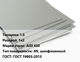 Лист нержавеющий 1.5 1х2 Сталь: AISI 430 Тип:4N, шлифованный ГОСТ 19903-2015