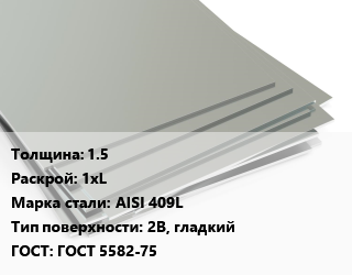 Лист нержавеющий 1.5 1хL Сталь: AISI 409L Тип:2B, гладкий ГОСТ 5582-75, по запросу цена от 168 800 ₽ / т, где купить, условия доставки в Иркутске и Иркутской области