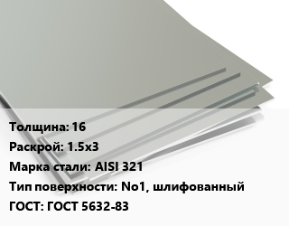 Лист нержавеющий 16 1.5х3 Сталь: AISI 321 Тип:No1, шлифованный ГОСТ 5632-83